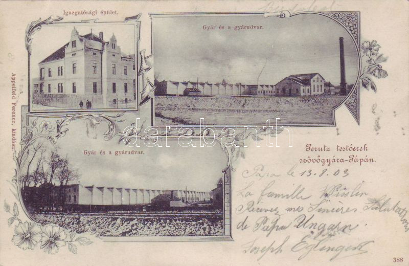 Pápa Spinnwerke von Perutz Brüder https://www.darabanth.com/de/4-Gross-Auktion/4.1/Ansichtskarten-Ungarn/~1001/Papa-Spinnwerke-von-Perutz-Bruder~II73333