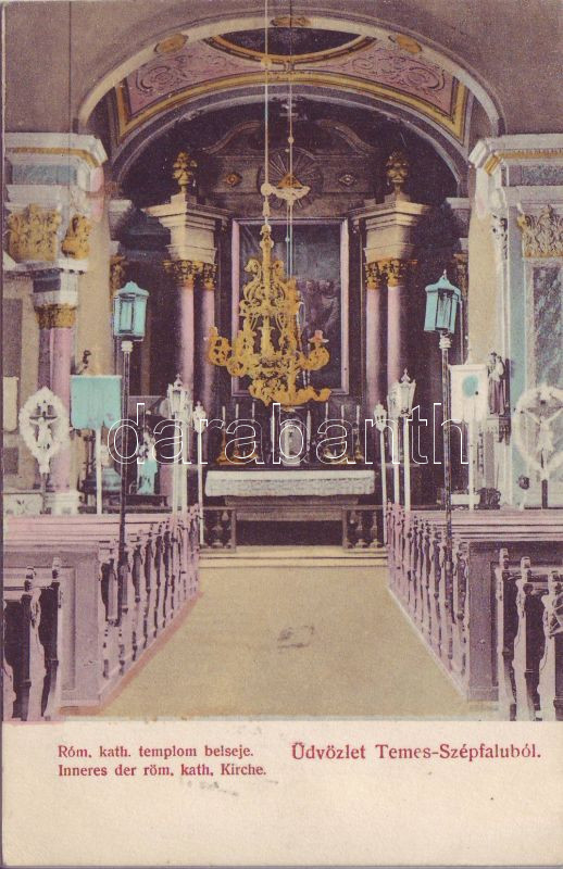 Temes-Szépfalu Inneres der kath. Kirche https://www.darabanth.com/de/4-Gross-Auktion/4.1/Ansichtskarten-Ungarn/~1004/Temes-Szepfalu-Inneres-der-kath-Kirche~II73329