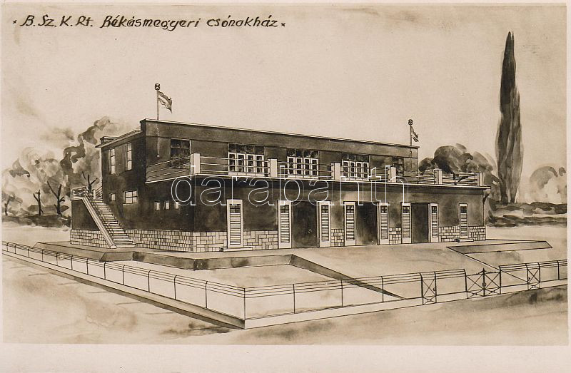 Békásmegyer BSZKRT Boothaus https://www.darabanth.com/de/4-Gross-Auktion/4.1/Ansichtskarten-Ungarn/~1008/Bekasmegyer-BSZKRT-Boothaus~II82059