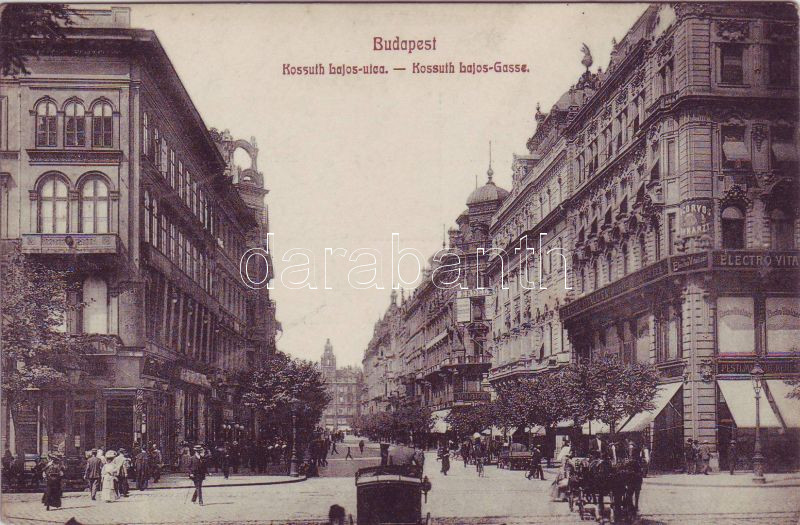 Budapest V. Kossuth Gasse https://www.darabanth.com/de/4-Gross-Auktion/4.1/Ansichtskarten-Ungarn/~1008/Budapest-V-Kossuth-Gasse~II73221
