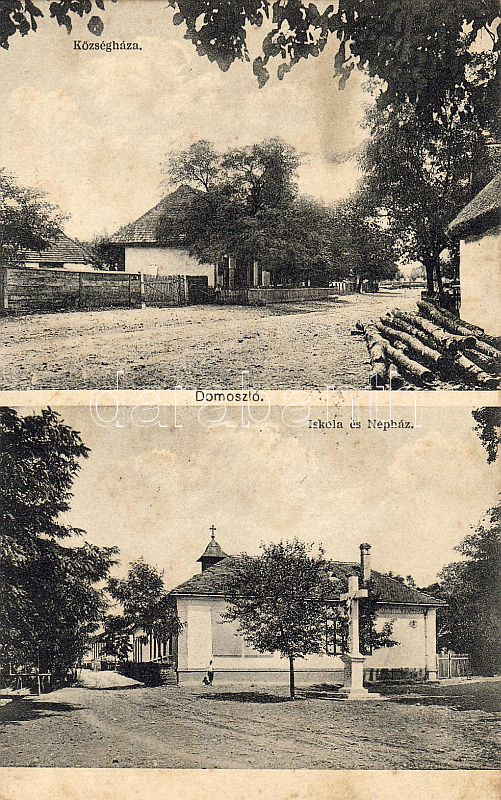 Domoszló Schule und Volkshaus (Rb) https://www.darabanth.com/de/4-Gross-Auktion/4.1/Ansichtskarten-Ungarn/~988/Domoszlo-Schule-und-Volkshaus-Rb~II73495