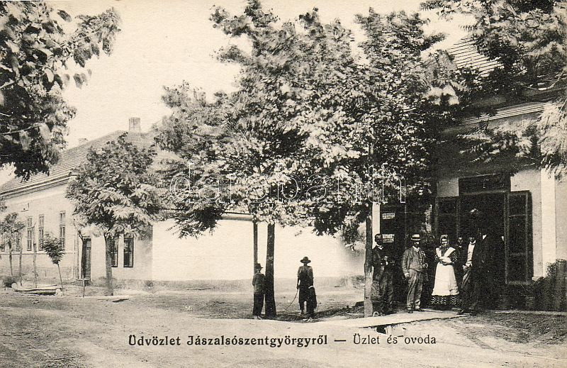 Jászalsószentgyörgy Geschäft u. Kindergarten https://www.darabanth.com/de/4-Gross-Auktion/4.1/Ansichtskarten-Ungarn/~995/Jaszalsoszentgyorgy-Geschaft-u-Kindergarten~II80930