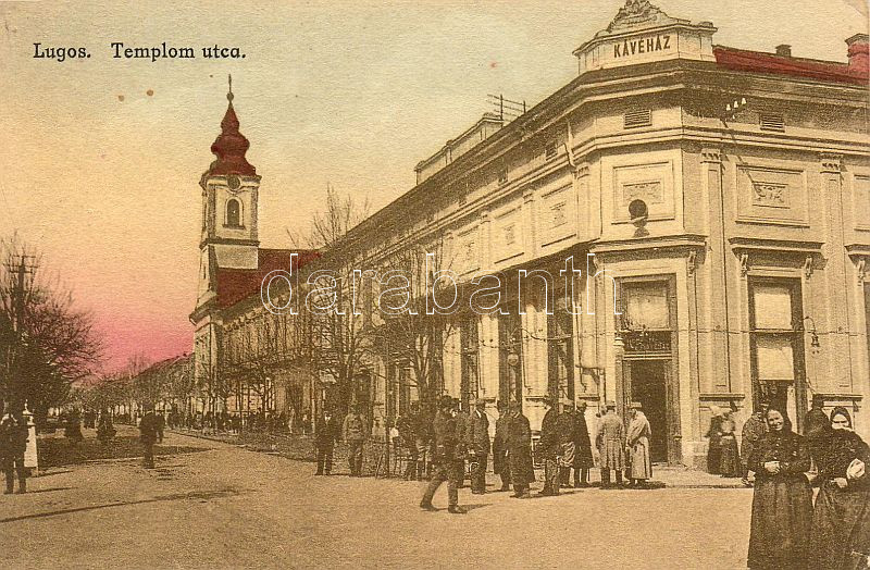 Lugos Café u. Kirchengasse https://www.darabanth.com/de/4-Gross-Auktion/4.1/Ansichtskarten-Ungarn/~997/Lugos-Cafe-u-Kirchengasse~II83458