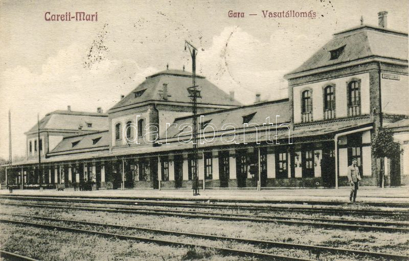 Beschreibung: Nagykároly Bahnhof so Stpl. "Nagykároly visszatért"