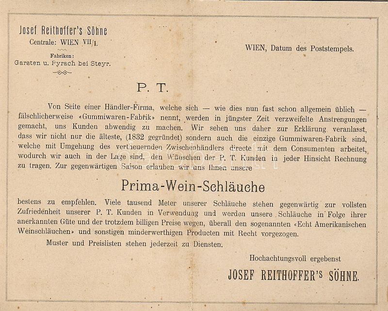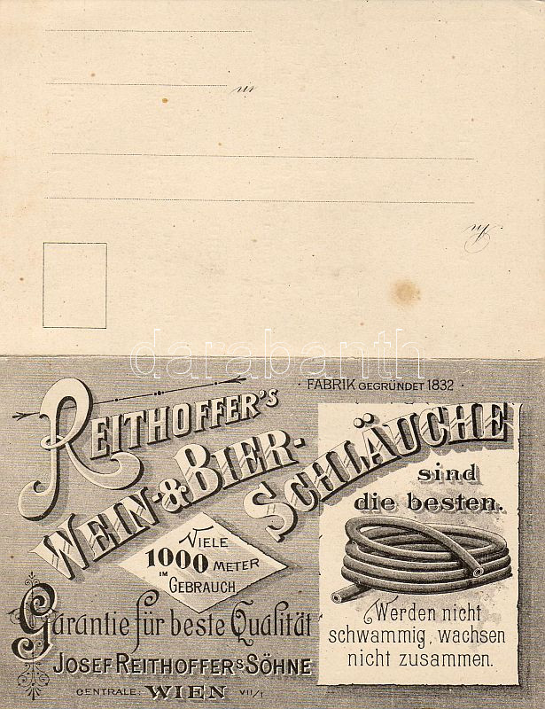 Ca. 1900 dekoratív reklám-levelezőlap / Wien, Wein- u. Bier Schläuche ... https://www.darabanth.com/de/4-Gross-Auktion/4.1/Kunst-Dokumente/~1148/Ca-1900-dekorativ-reklam-levelezolap-Wien-Wein-u-Bier-Schlauche-Dekor-Werbung-Corresponde~II92004
