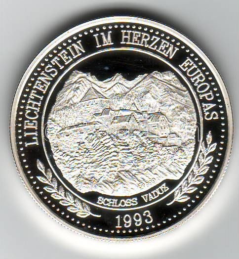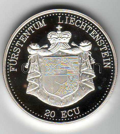 Beschreibung: Lichtenstein 1993. 20Ecu "Vaduz" Ag T:PP R!