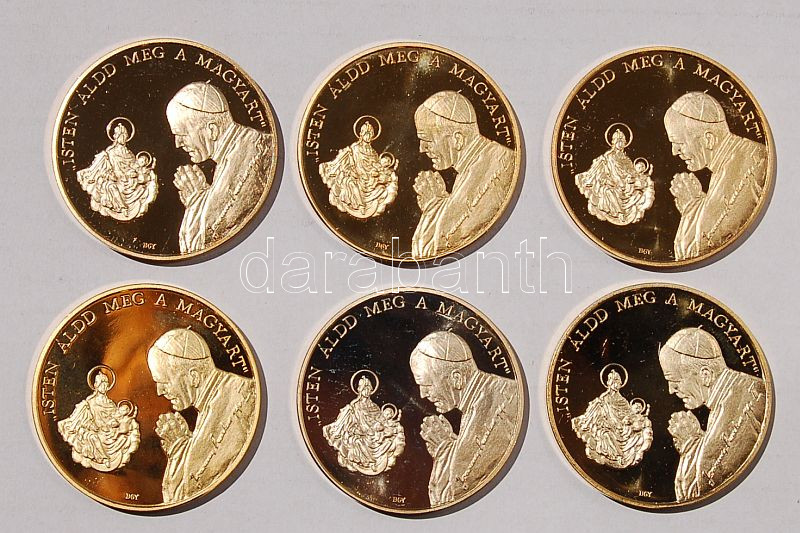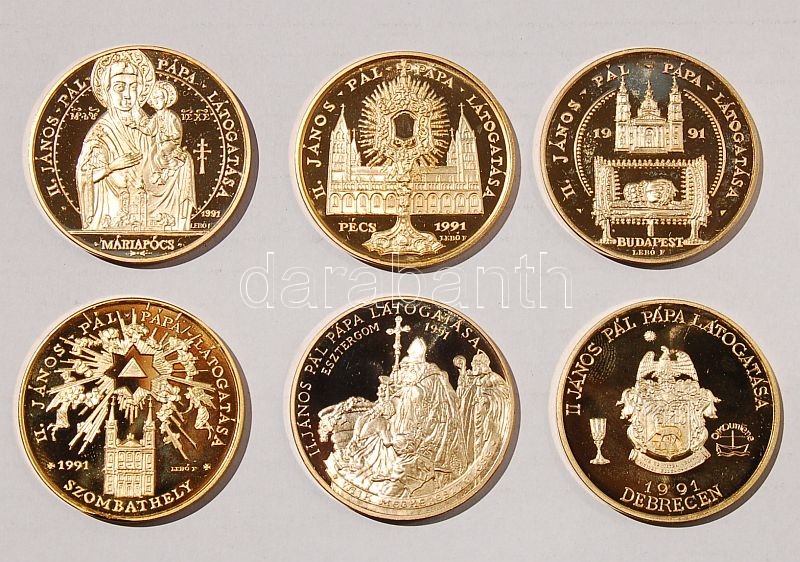 1991. "II. János Pál pápa látogatása" 6 klf db aranyozott fém T:PP https://www.darabanth.com/de/40-Fernauktion/40.0/Numismatik/~175/1991-II-Janos-Pal-papa-latogatasa-6-klf-db-aranyozott-fem-TPP~II78018