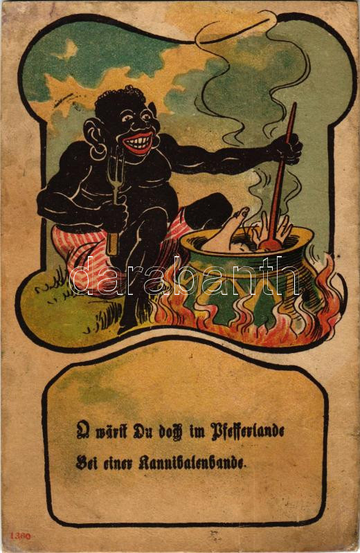 1909 Fekete kannibál főzi a fehér-ember ebédet / Black cannibal cookin... https://www.darabanth.com/de/40-Gross-Auktion/40.1/Ansichtskarten/Humor~16487/1909-Fekete-kannibal-fozi-a-feher-ember-ebedet-Black-cannibal-cooking-the-white-men-lunch-Art~II2880438