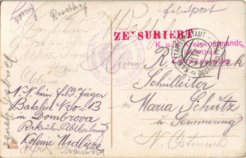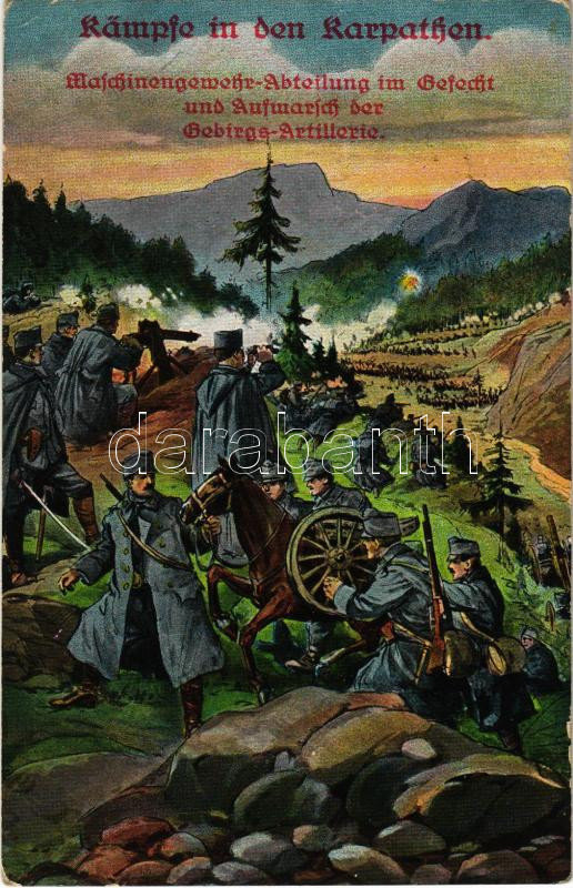 1915 Kämpfe in den Karpathen. Maschinengewehr Abteilung im Gefecht und Aufmarsch der Gebirge Artillerie. L&P 1808. (EK) + K.u.K. Kreiskommando Dabrowa Zensurstelle"