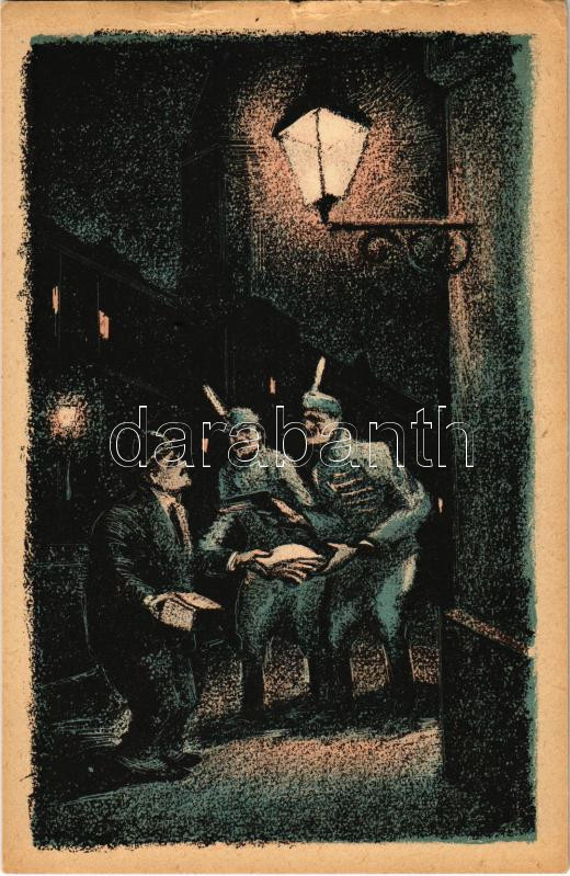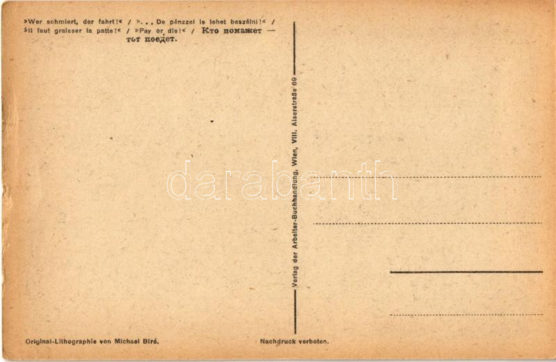 De pénzzel is lehet beszélni! Fehérterror Magyarországon. Verlag der Arbeiter-Buchhandlung / White Terror in Hungary, left-wing propaganda card, Judaica s: Bíró Mihály (apró szakadás / tiny tear)
