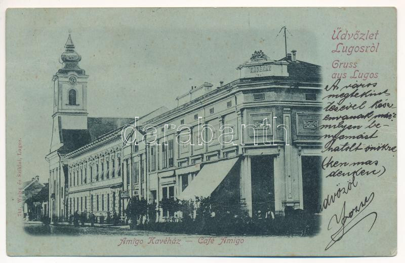 1900 Lugos, Lugoj; Amigo kávéház. Weisz és Sziklai kiadása / cafe (gyű... https://www.darabanth.com/de/40-Gross-Auktion/40.1/Ansichtskarten/Siebenburgen~16469/1900-Lugos-Lugoj-Amigo-kavehaz-Weisz-es-Sziklai-kiadasa-cafe-gyurodesek-creases~II2859305