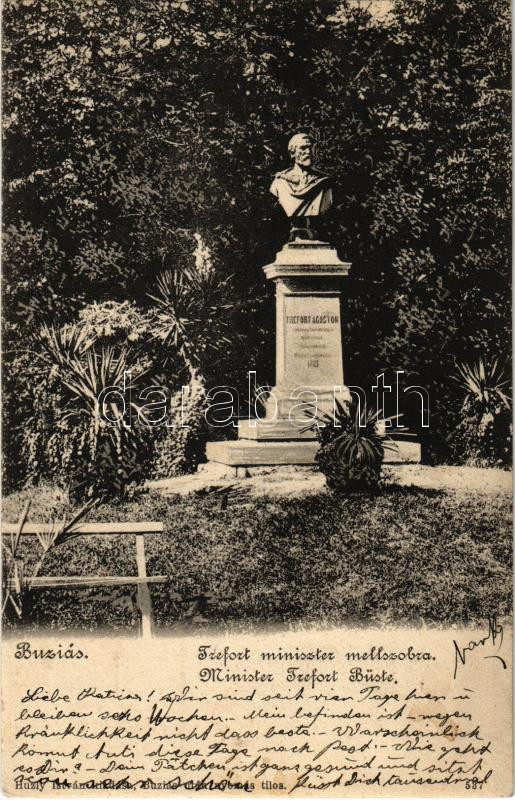 Beschreibung: 1902 Buziás, Trefort miniszter mellszobra. Huzly István kiadása / Minister Trefort Büste / statue