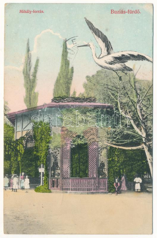 1908 Buziás-fürdő, Baile Buzias; Mihály forrás. Montázs gólyával, Fran... https://www.darabanth.com/de/40-Gross-Auktion/40.1/Ansichtskarten/Siebenburgen~16469/1908-Buzias-furdo-Baile-Buzias-Mihaly-forras-Montazs-golyaval-Francz-testverek-kiadasa~II2877210