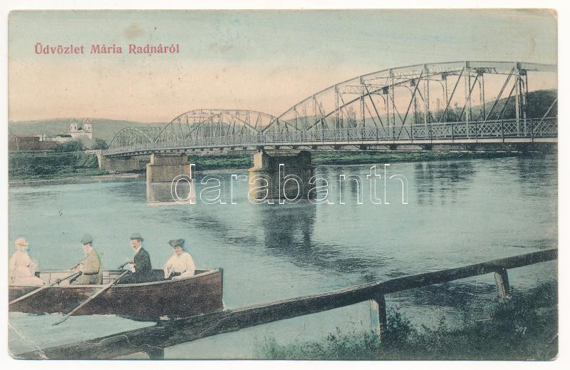 1908 Máriaradna, Radna (Lippa, Lipova); híd. Montázs csónakázókkal, Ko... https://www.darabanth.com/de/40-Gross-Auktion/40.1/Ansichtskarten/Siebenburgen~16469/1908-Mariaradna-Radna-Lippa-Lipova-hid-Montazs-csonakazokkal-Kohn-Lajos-kiadasa-brid~II2877184