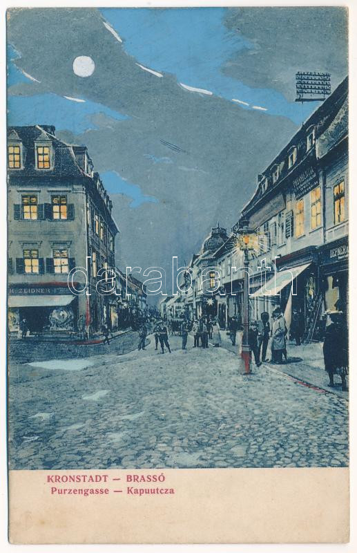 1913 Brassó, Kronstadt, Brasov; Purzengasse am Nacht / Kapu utca este,... https://www.darabanth.com/de/40-Gross-Auktion/40.1/Ansichtskarten/Siebenburgen~16469/1913-Brasso-Kronstadt-Brasov-Purzengasse-am-Nacht-Kapu-utca-este-H-Zeidner-Providentia-es-~II2871500