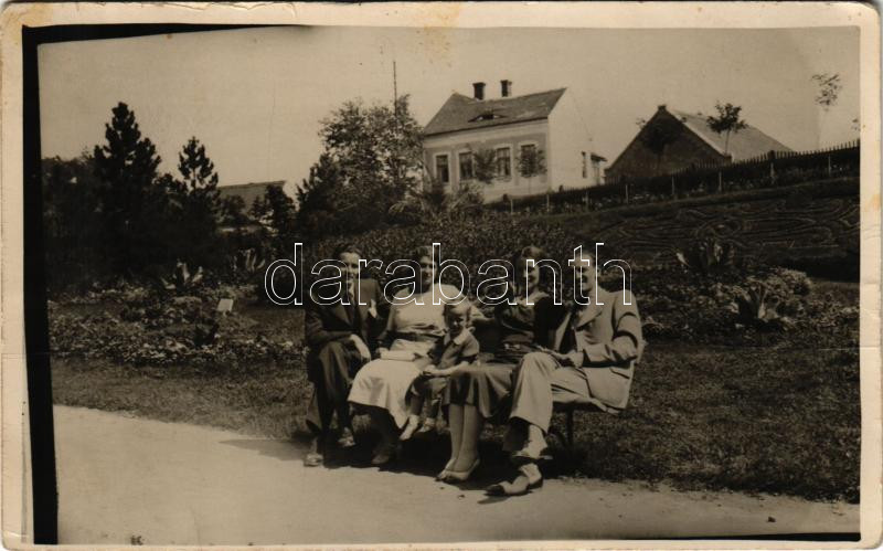 Beschreibung: 1935 Vízakna, Salzburg, Ocna Sibiului; fürdővendég a parkban / spa guests in the park. photo (ragasztónyomok / gluemarks)
