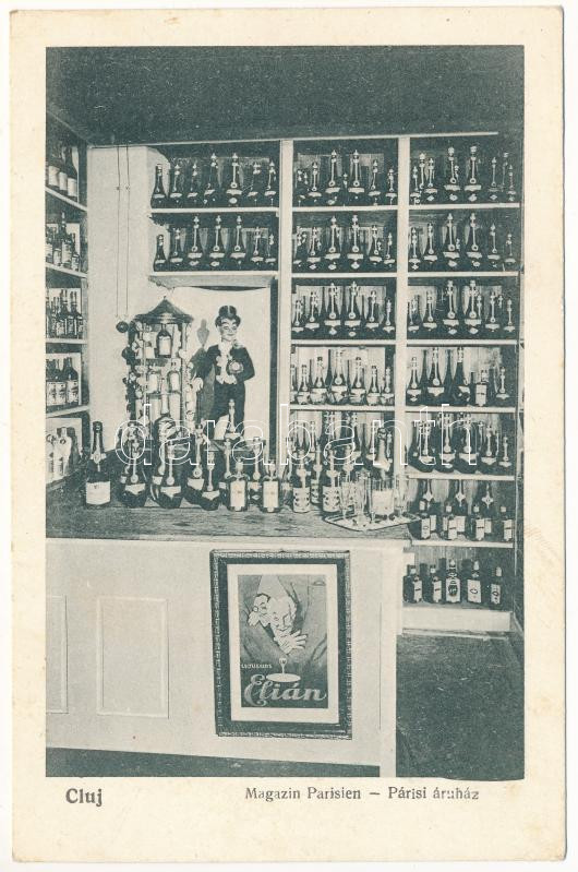 Kolozsvár, Cluj; Párisi áruház belső, Elián likőrös üvegek / Magazin P... https://www.darabanth.com/de/40-Gross-Auktion/40.1/Ansichtskarten/Siebenburgen~16469/Kolozsvar-Cluj-Parisi-aruhaz-belso-Elian-likoros-uvegek-Magazin-Parisien-shop-interi~II2876850