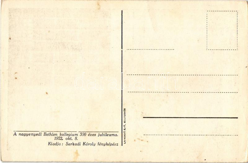 Nagyenyed, Aiud; "Kérek egy kicsi cipót" A nagyenyedi Bethlen kollégium 300 éves jubileuma 1922-ben. Kiadja Sarkadi Károly fényképész / Calvinist boarding school, students with beggar (fl)