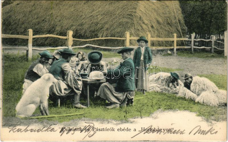 1905 Hortobágy, csikósok és pásztorok ebéde https://www.darabanth.com/de/40-Gross-Auktion/40.1/Ansichtskarten/Ungarn~16468/1905-Hortobagy-csikosok-es-pasztorok-ebede~II2856680