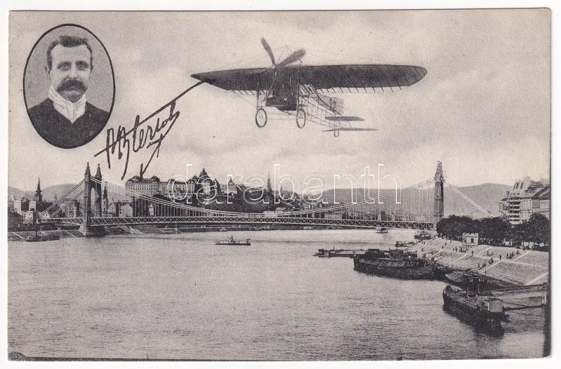 1909 Budapest, Bleriot repülőgépe az Erzsébet híd felett, montázs (EK) https://www.darabanth.com/de/40-Gross-Auktion/40.1/Ansichtskarten/Ungarn~16468/1909-Budapest-Bleriot-repulogepe-az-Erzsebet-hid-felett-montazs-EK~II2876563