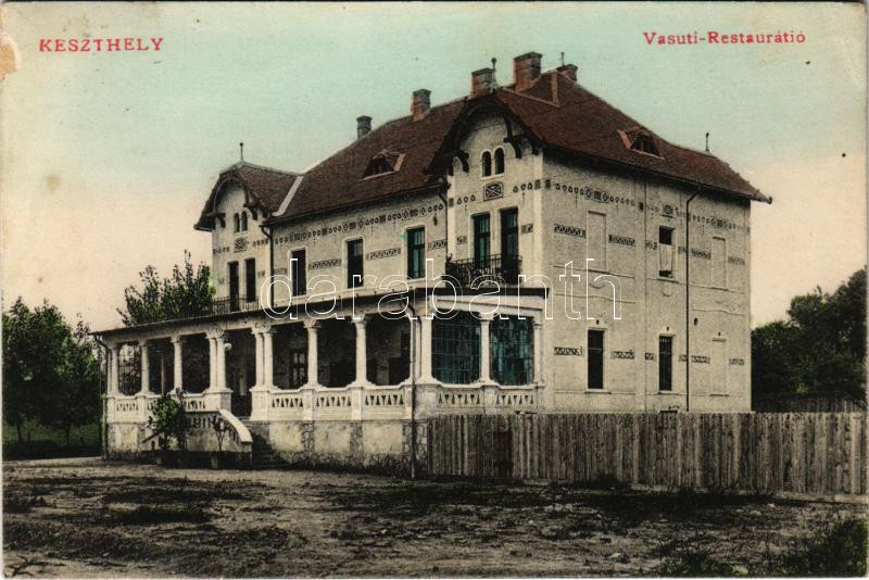 1910 Keszthely, Vasúti Restaurátió, vendéglő, étterem. Mérei Ignác N. ... https://www.darabanth.com/de/40-Gross-Auktion/40.1/Ansichtskarten/Ungarn~16468/1910-Keszthely-Vasuti-Restauratio-vendeglo-etterem-Merei-Ignac-N-801-1910-felszini-s~II2870861