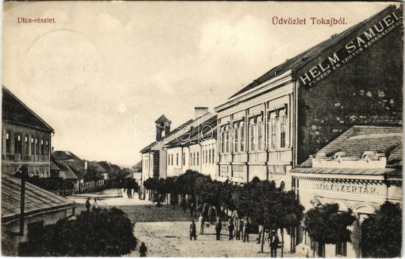1911 Tokaj, utca, gyógyszertár, Helm Sámuel fűszer és vaskereskedése é... https://www.darabanth.com/de/40-Gross-Auktion/40.1/Ansichtskarten/Ungarn~16468/1911-Tokaj-utca-gyogyszertar-Helm-Samuel-fuszer-es-vaskereskedese-es-sajat-kiadasa-EK~II2865768