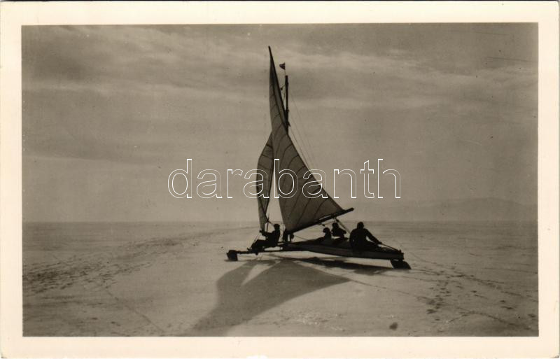 1940 Balaton, téli sport, jégvitorlázás https://www.darabanth.com/de/40-Gross-Auktion/40.1/Ansichtskarten/Ungarn~16468/1940-Balaton-teli-sport-jegvitorlazas~II2874432