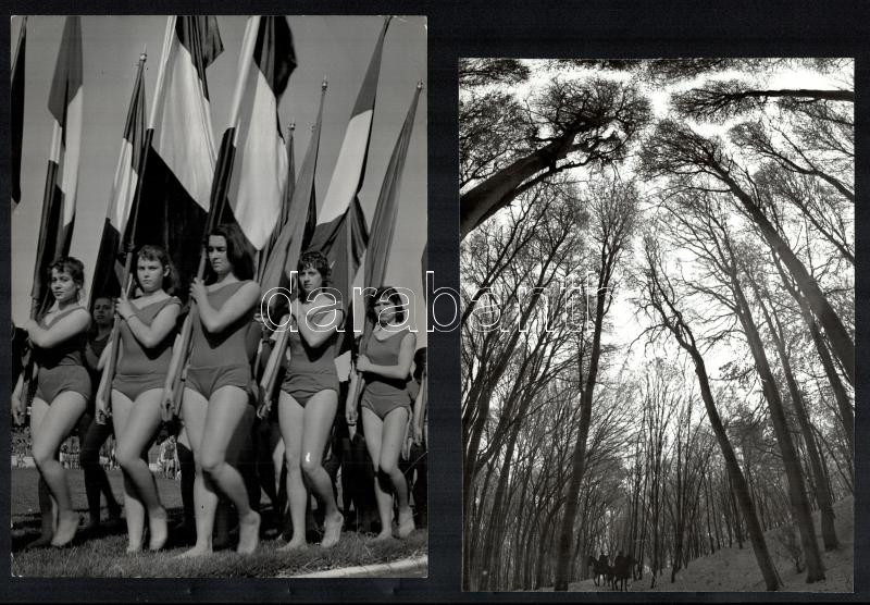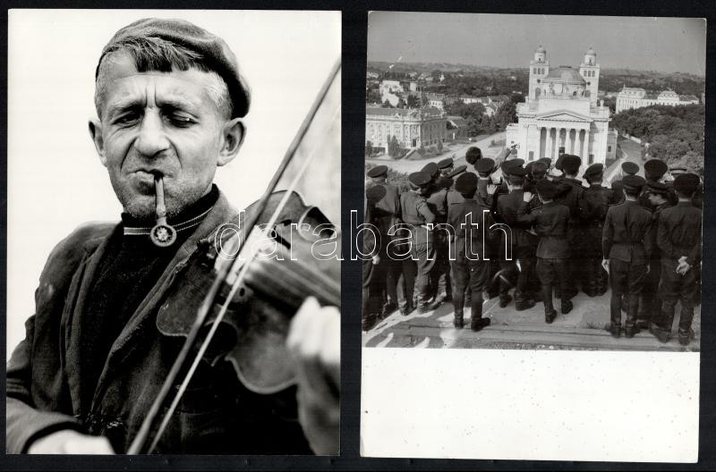 cca 1945 és cca 1980 között készült fényképek sokféle témáról (Eger, elefánt, juhász, évszakok, műemlék, hegedűs, portré, életkép, fürdőruha, stb.), néhány feliratozott, összesen 17 db vintage fotó, ezüst zselatinos fotópapíron, a használatból eredő - esetleges - kisebb hibákkal, 24x18 cm és 21,5x15 cm között