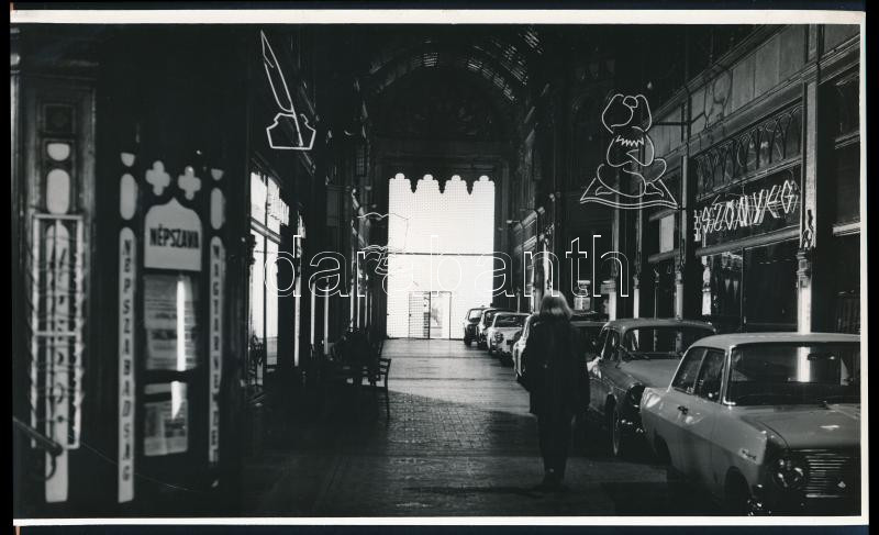 Beschreibung: cca 1966 Budapest, Párizsi udvar, 1 db vintage fotó, ezüst zselatinos fotópapíron, 18x30 cm