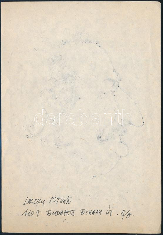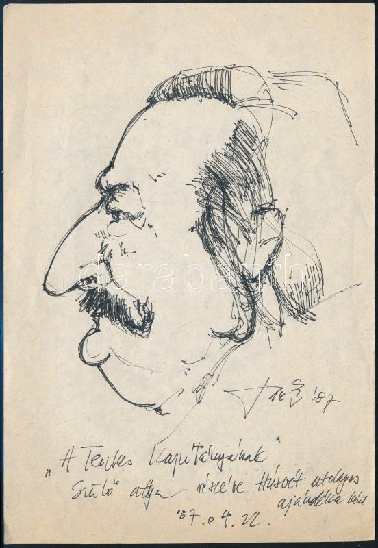1987 Laczky István (1958-) szignált, dedikált tollrajza Örsi Ferenc (1927-1994) íróról, 19×13 cm