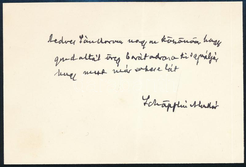 Beschreibung: Schöpflin Aladár (1872-1950) író autográf sorai "Kedves Sándorom!" megszólítással