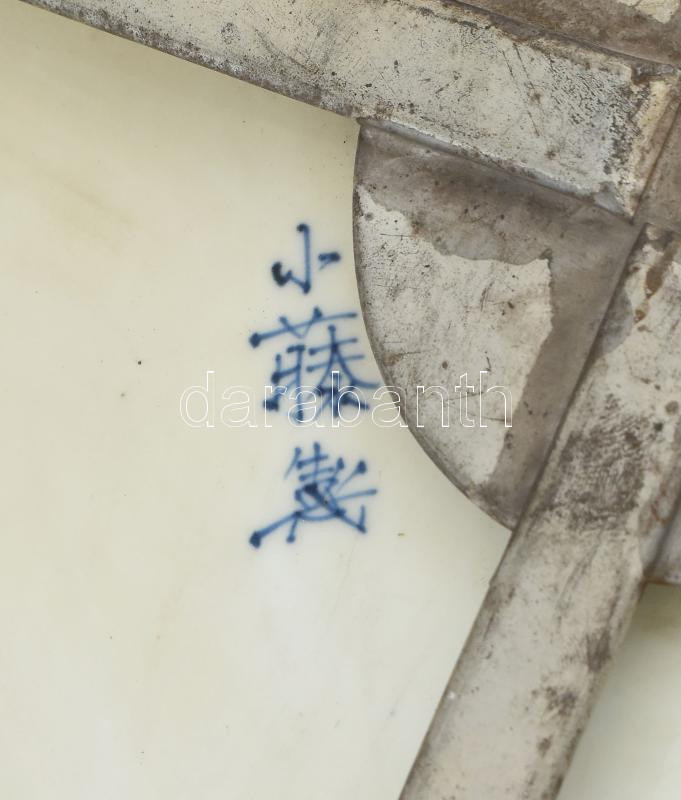 Imari tál porcelán, öblében máz alatti kékkel, máz felett vörössel és arannyal festett állati motívumok. Korának megfelelő kopásokkal. Japán, Arita, Meiji korszak (1868-1912) d: 59 cm
