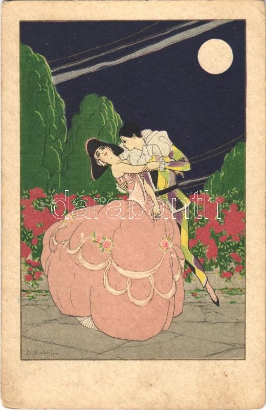 Beschreibung: Italian lady art postcard, romantic couple at night. Majestic CCM 2474. s: D. Gobbi (EK)