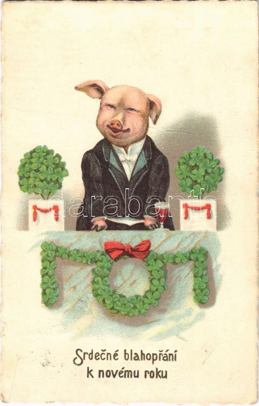 1924 Srdecné blahoprání k novému roku / New Year / Újévi malac. LP 960... https://www.darabanth.com/de/400-Fernauktion/400.0/Ansichtskarten/GruC39Fkarten-Feste~1000100/1924-Srdecne-blahoprani-k-novemu-roku-New-Year-Ujevi-malac-LP-960-litho~II2427106