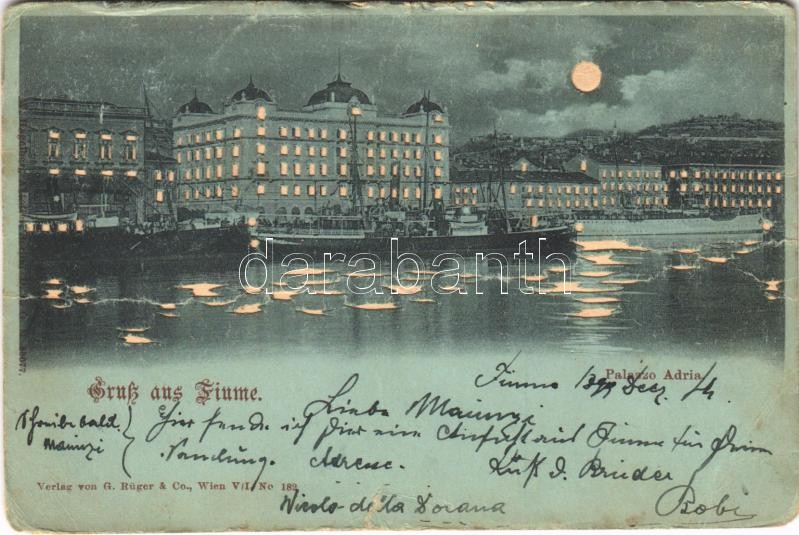 1899 (Vorläufer) Fiume, Rijeka; Palazzo Adria / palace, night (fa) https://www.darabanth.com/de/400-Fernauktion/400.0/Ansichtskarten/Kroatien~1000010/1899-Vorlaufer-Fiume-Rijeka-Palazzo-Adria-palace-night-fa~II2449519