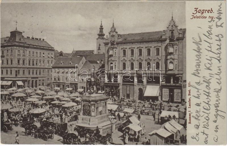 1903 Zagreb, Zágráb; Jelacicev trg, Hinko Kaufmann i Drug, Skladiste P... https://www.darabanth.com/de/400-Fernauktion/400.0/Ansichtskarten/Kroatien~1000010/1903-Zagreb-Zagrab-Jelacicev-trg-Hinko-Kaufmann-i-Drug-Skladiste-Pokuctva-market-shops-pi~II2452882