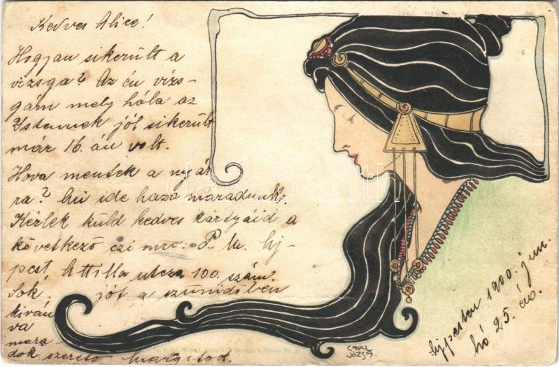 Beschreibung: 1900 Art Nouveau lady. A. Sockl Wien I. Serie VII. Sirenen u. Circen Nr. 33. litho s: Carl Józsa (apró lyukak / tiny pinholes)