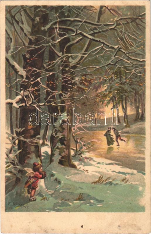 Beschreibung: Ice skating romantic couple in winter. Kunstverlag Rafael Neuber "Ei, Ei" S. 57. litho s: Döcker (fl)
