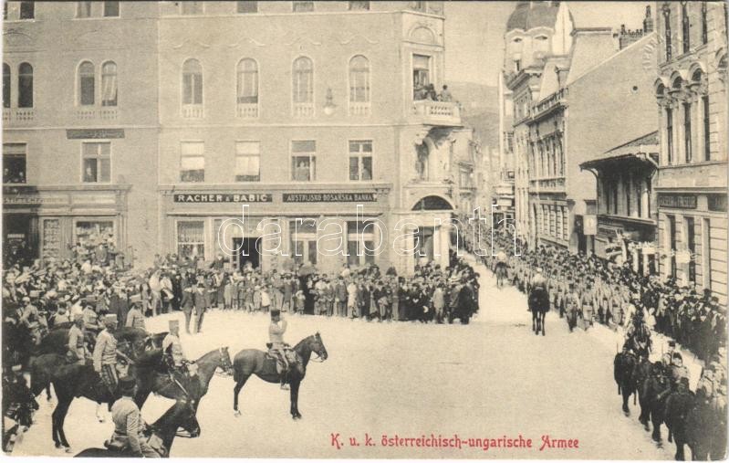 1914 Sarajevo, K.u.K. österreichisch-ungarische Armee, Austrijsko Bosanska Bank / WWI Austro-Hungarian K.u.K. Army, shop of Racher & Babic, Austro-Bosnian bank (EK)