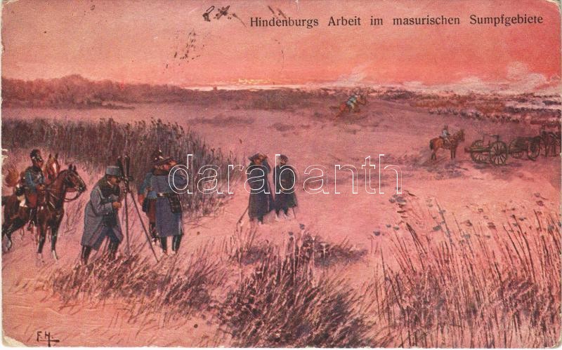1916 Hindenburgs Arbeit im masurischen Sumpfgebiete / WWI German and Austro-Hungarian K.u.K. military art postcard s: F. Höllerer (kis szakadás / small tear)