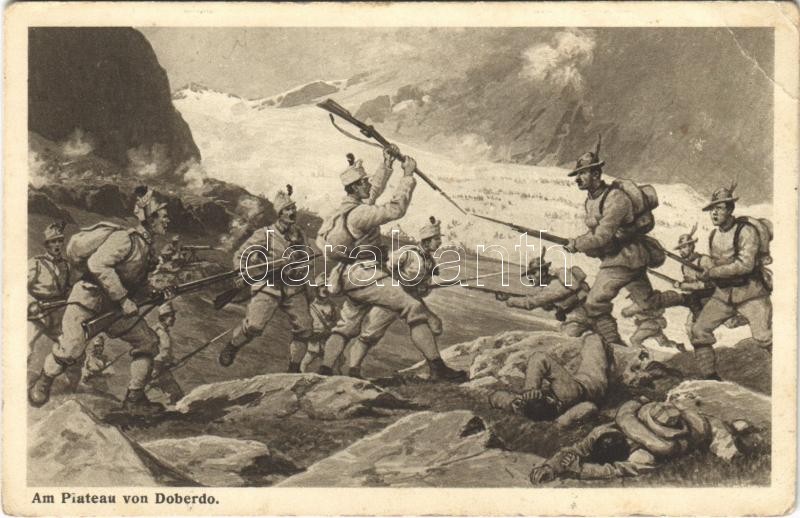 Am Plateau von Doberdo / WWI Austro-Hungarian K.u.K. military art post... https://www.darabanth.com/de/400-Fernauktion/400.0/Ansichtskarten/Militaria~1000080/Am-Plateau-von-Doberdo-WWI-Austro-Hungarian-KuK-military-art-postcard-mountain-troops-on-the-I~II2450054