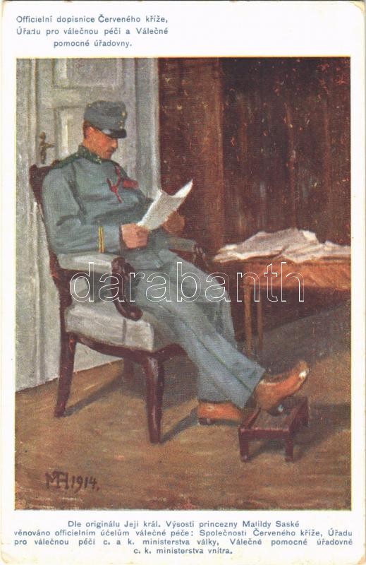 Officielní dopisnice Cerveného kríze, Úradu pro válecnou péci a Válecné pomocné úradovny Cis. 47. / Offizielle Karte für Rotes Kreuz, Kriegsfürsorgeamt Kriegshilfsbüro Nr. 47. / WWI Austro-Hungarian K.u.K. military art postcard, support fund (Czech edition) s: Princess Mathilde of Saxony (EK)