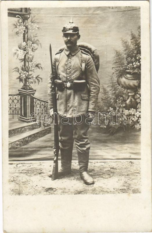 WWI German military, soldier with bayonet. photo (fl) https://www.darabanth.com/de/400-Fernauktion/400.0/Ansichtskarten/Militaria~1000080/WWI-German-military-soldier-with-bayonet-photo-fl~II2450014