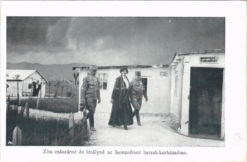 Zita császárné és királyné az Isonzo front barakk kórházaiban / WWI Empress and Queen Zita of Bourbon-Parma (wife of Charles I of Austria) at the K.u.K. military field hospital barracks at the Isonzo front - képeslapfüzetből / from postcard booklet