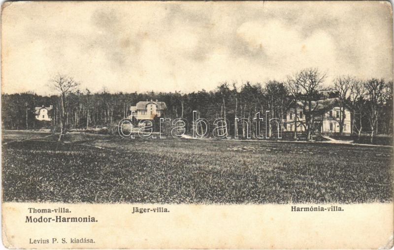 Beschreibung: 1907 Modor-Harmónia, Modra; Thoma, Jäger és Harmónia villa. Levius P. kiadása / villas (fa)