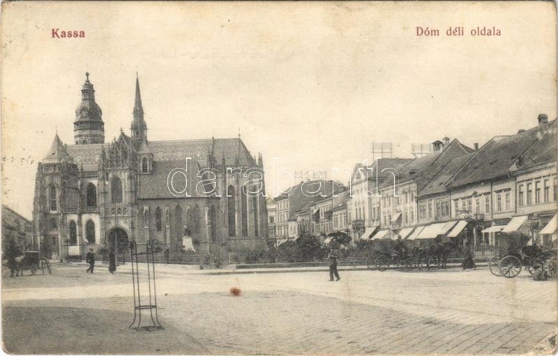 1913 Kassa, Kosice; Dóm déli oldala / cathedral, square (EK) https://www.darabanth.com/de/400-Fernauktion/400.0/Ansichtskarten/Slowakei~1000008/1913-Kassa-Kosice-Dom-deli-oldala-cathedral-square-EK~II2455279