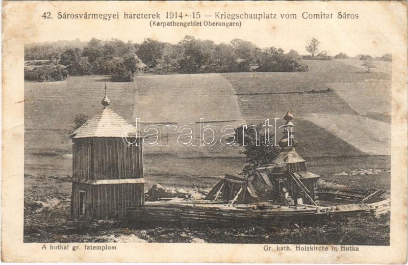 Hutás, Hutka; Görög katolikus fatemplom romok, 42. Sárosvármegyei harcterek 1914-15. Friedmann József kiadása / Gr. kath. Holzkirche, Kriegschauplatz vom Comitat Sáros / WWI Greek catholic wooden church ruins (EB)