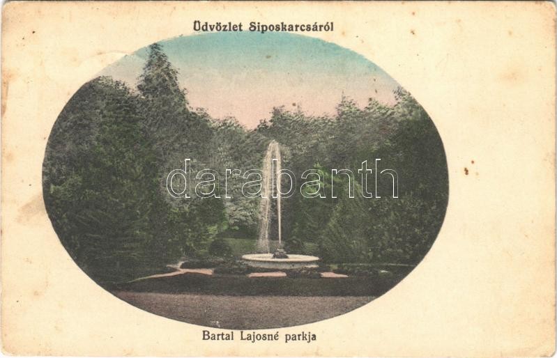 Beschreibung: Siposkarcsa, Siposovske Kracany (Egyházkarcsa, Kostolné Kracany); Bartal Lajosné parkja, szökőkút / villa park, fountain (Rb)