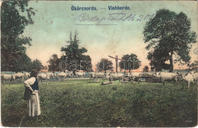 1908 Hortobágy, Ökörcsorda, magyar folklór (ázott / wet damage) https://www.darabanth.com/de/400-Fernauktion/400.0/Ansichtskarten/Ungarn~1000006/1908-Hortobagy-Okorcsorda-magyar-folklor-azott-wet-damage~II2452262