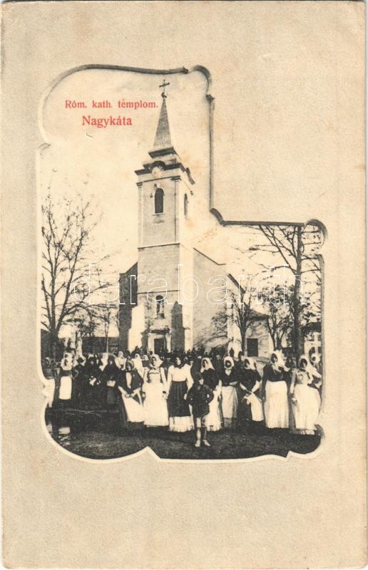 Beschreibung: 1910 Nagykáta, Római katolikus templom. Fogyasztási Szövetkezet kiadása (EK)